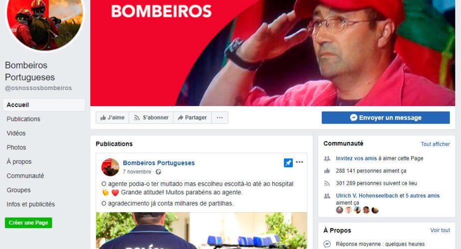 Au Portugal, c’est flagrant. Je suis tombé il y a quelques mois sur un groupe facebook se nommant « Bombeiros 24 », possédant un site associé. Ayant été pompier, je pouvais me sentir concerné, mais… Ce groupe jouait sur l’ambiguïté, de très nombreuses personnes croyant qu’il s’agissait du groupe officiel des pompiers portugais. Sauf que le langage ne s’y prêtait pas, les informations étant bien trop polémiques et orientées, pour ne pas dire souvent carrément fausses. C’était flagrant lors du drame des incendies de Pedrogão Grande.